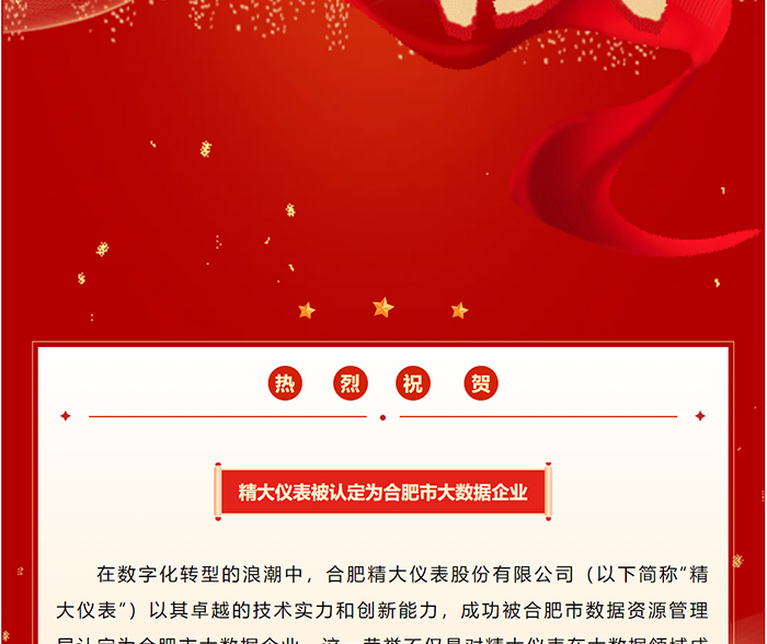 喜報(bào)!精大儀表被認(rèn)定為 合肥市大數(shù)據(jù)企業(yè)