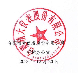 三、投標人應于2024 年12 月30 日前,將標書送達合肥精大儀表股份有限公司(北區(qū)),